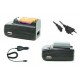 Charge les piles AA, AAA et batteries Li-ion Sortie USB 0.5A basse consommation Quatre adaptateurs de prise fournis Adaptateur de voiture 12V inclus