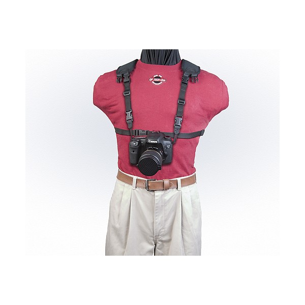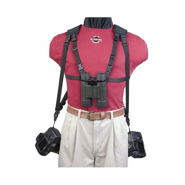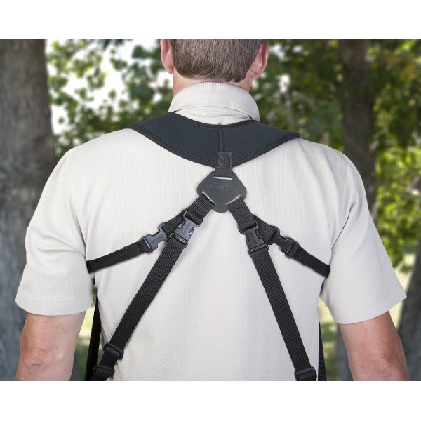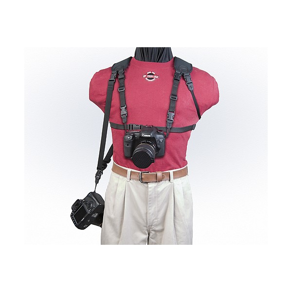 Le harnais triple OPTECH en néoprène peut transporter jusqu'à trois appareils confortablement et en toute sécurité.