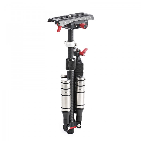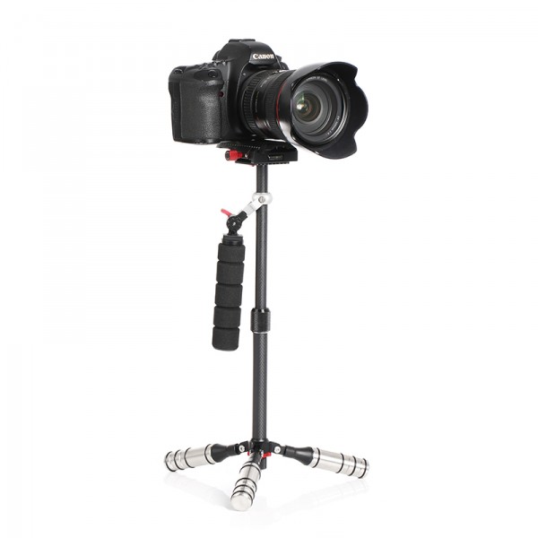 Le SK-SW Pro 1 est un stabilisateur compact et pliable conçu pour une utilisation avec les reflex numériques ou les petits caméscopes pesant jusqu'à 2,5 kg. Il est composé de matériau de fibre de carbone et d’aluminium et d’une plaque de dégagement rapide.