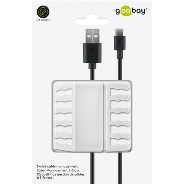 Dispositif de gestion de câbles à cinq fentes pour ranger et attacher les câbles.
