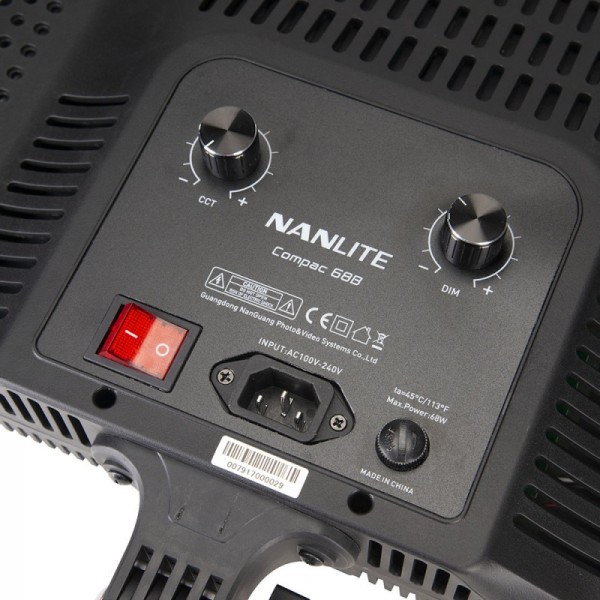 Le panneau LED de studio à lumière douce bicolore Compac 68B 22 x 14 x 4 ' de NanLite est un choix idéal pour le travail en studio ou sur site où la précision des couleurs, le contrôle et la sortie sans scintillement sont d'une importance majeure. La couleur du Compac 68B La température varie de 3200 à 5600K pour répondre aux défis de la lumière ambiante, correspondre à d'autres appareils ou à leurs préréglages, ou simplement pour une expression créative, tandis que son CRI élevé de 95 est un indicateur d'un rendu des couleurs fidèle et précis. La gradation de 100 à 0% est commodément effectuée sur l'écran LCD du panneau arrière avec un décalage de couleur négligeable. La faible consommation électrique de seulement 68 W signifie un retour sur investissement rapide. Le Compac 68B peut être utilisé dans le monde entier grâce à son adaptateur secteur 100-240 VAC inclus. Fourni avec un récepteur standard de 5/8 ', le Compac 68B peut être monté directement sur n'importe quel support d'éclairage standard de l'industrie. Les panneaux LED Studio de la série Compac créent un éclairage de studio diffus et précis avec une configuration minimale et sans complications. Bien adapté aux interviews d'éclairage, aux prises de vue, aux natures mortes, aux vlogs, etc. Un panneau LCD vous montre exactement les paramètres que vous utilisez, ce qui vous permet de les ajuster facilement, puis de les recréer à l'avenir afin que vos résultats soient toujours facilement reproductibles. Combinant un design peu encombrant et une luminosité impressionnante, les LED de studio de la série Compac obtiennent un éclairage similaire à celui des grandes softbox, mais à une fraction de la taille et aucun du temps de configuration. Obtenez rapidement des résultats attrayants de qualité studio sans ajouter de filtres en plastique ou de diffusion en tissu. Les commandes arrière vous permettent de régler la luminosité de 0 à 100% et la température de la balance tungstène chaude à la lumière du jour (3200 à 5600K).