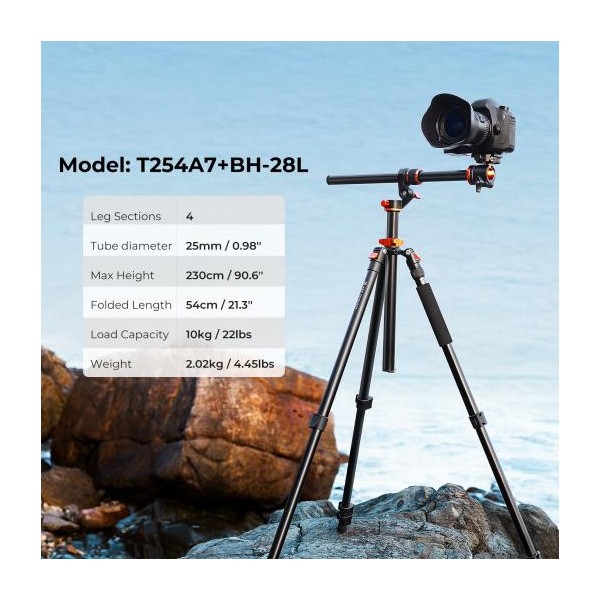 K&F Trepied alu + rotule 28mm colonne centrale charge 10kg
