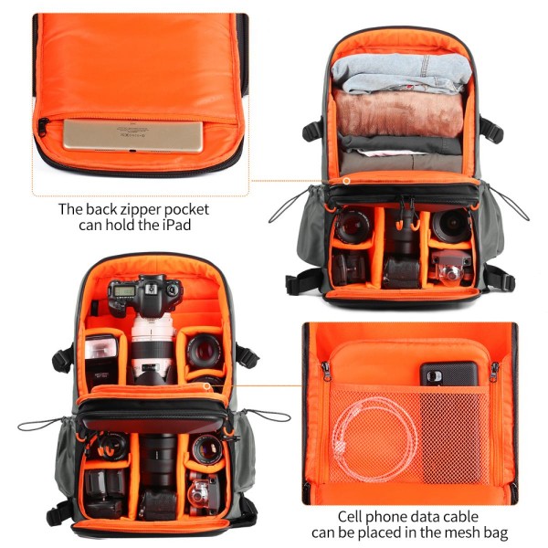 Peut transporter un trépied de 60 cm, une tente et la sangle externe peut être équipée de bâtons de randonnée.