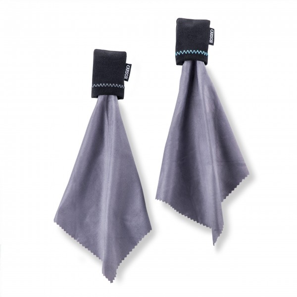 Lot de deux chiffons de nettoyage en microfibre avec pochette de protection.