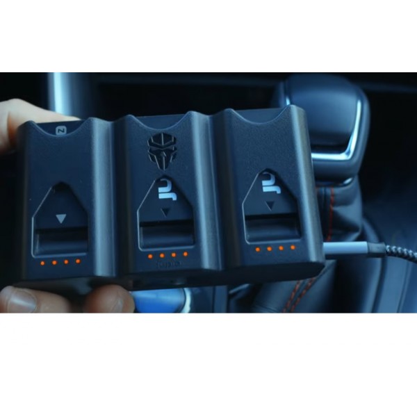 Mais le Tri Charge est un produit de stockage pratique pour vos batteries mais c’est également un chargeur rapide. Branchez simplement le câble USB-C inclus et il chargera les 3 batteries simultanément.